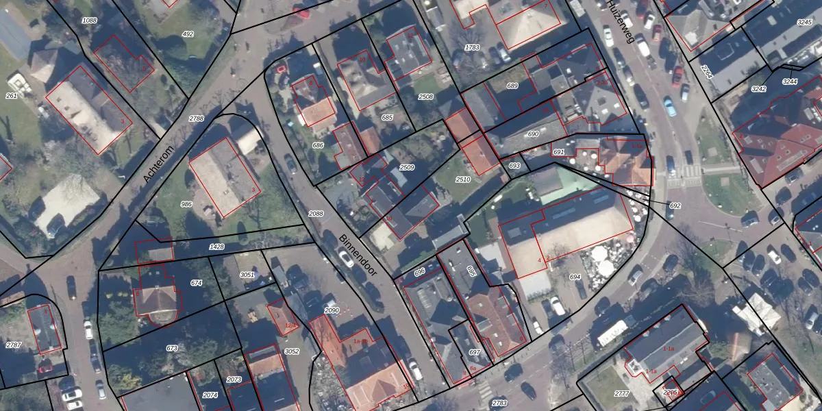 Gebruik de zoekbalk of klik op een perceel voor informatie over de adressen binnen dit perceel.
