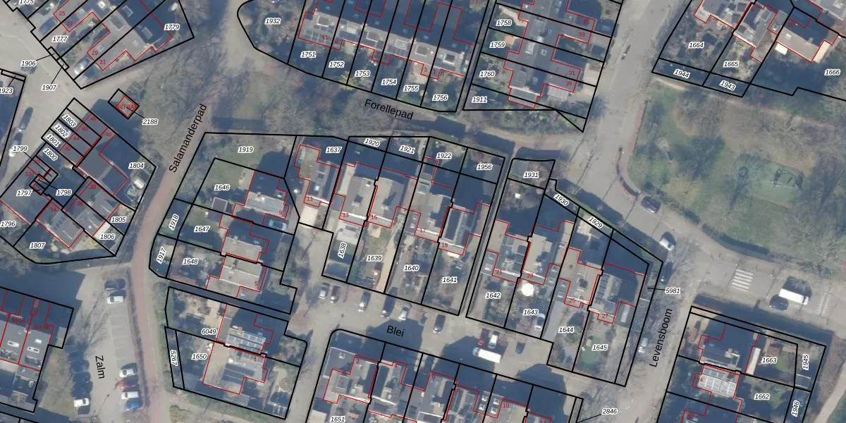 Het perceel waarop Blei 17 staat heeft een oppervlakte van 294 m². Dit is een middelgroot perceel. De perceeloppervlakte wordt geregistreerd door het Kadaster. Gedetailleerde informatie over de maten van dit perceel kunt u vinden in het rapport Kadastrale kaart met maatvoering van Blei 17.