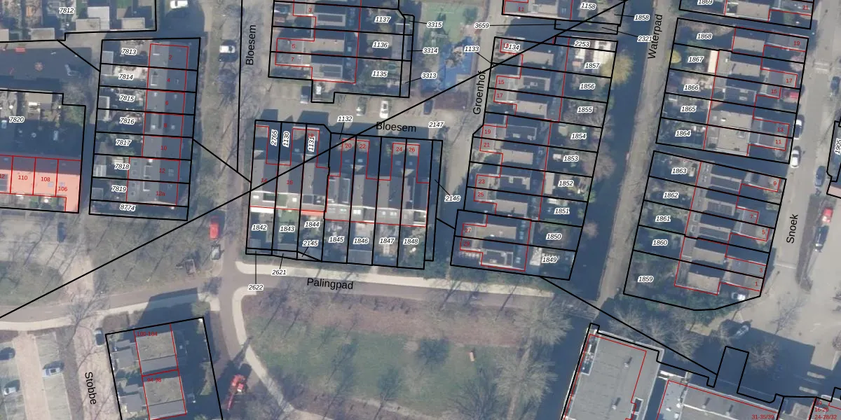 Gebruik de zoekbalk of klik op een perceel voor informatie over de adressen binnen dit perceel.