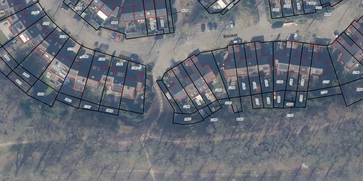 Het perceel waarop Booket 62 staat heeft een oppervlakte van 203 m². Dit is een middelgroot perceel. De perceeloppervlakte wordt geregistreerd door het Kadaster. Gedetailleerde informatie over de maten van dit perceel kunt u vinden in het rapport Kadastrale kaart met maatvoering van Booket 62.