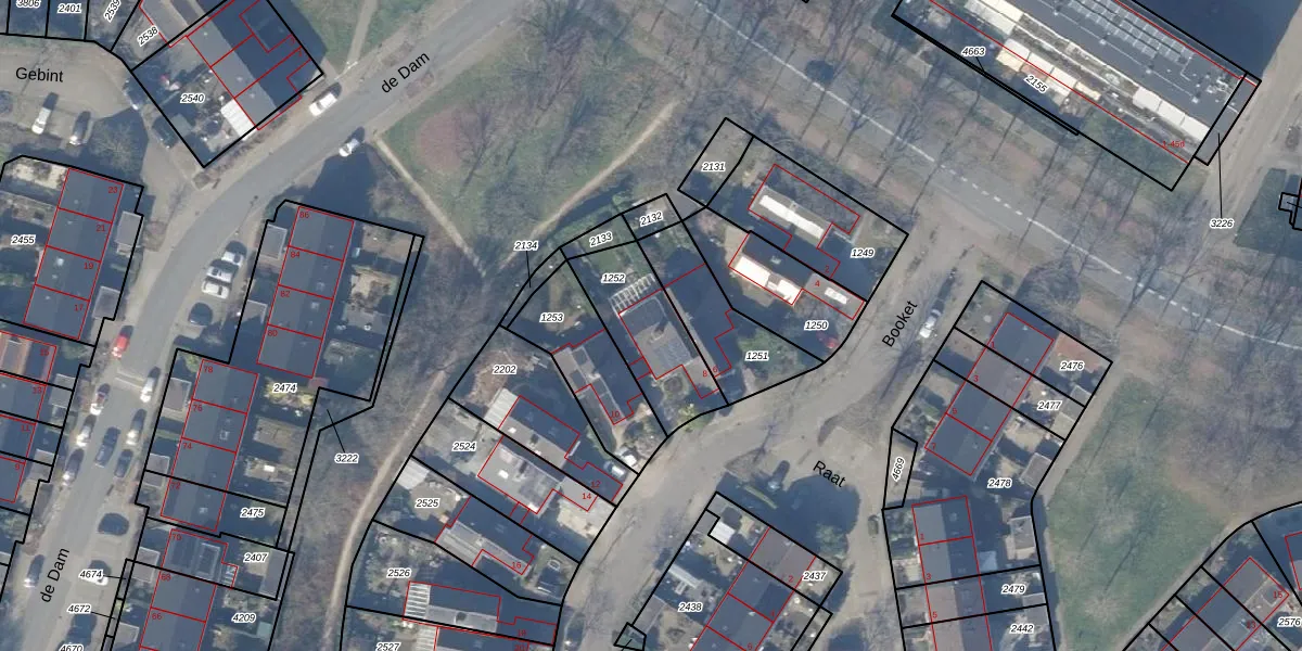 Gebruik de zoekbalk of klik op een perceel voor informatie over de adressen binnen dit perceel.