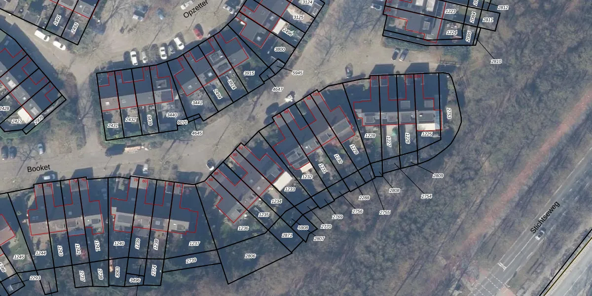 Gebruik de zoekbalk of klik op een perceel voor informatie over de adressen binnen dit perceel.