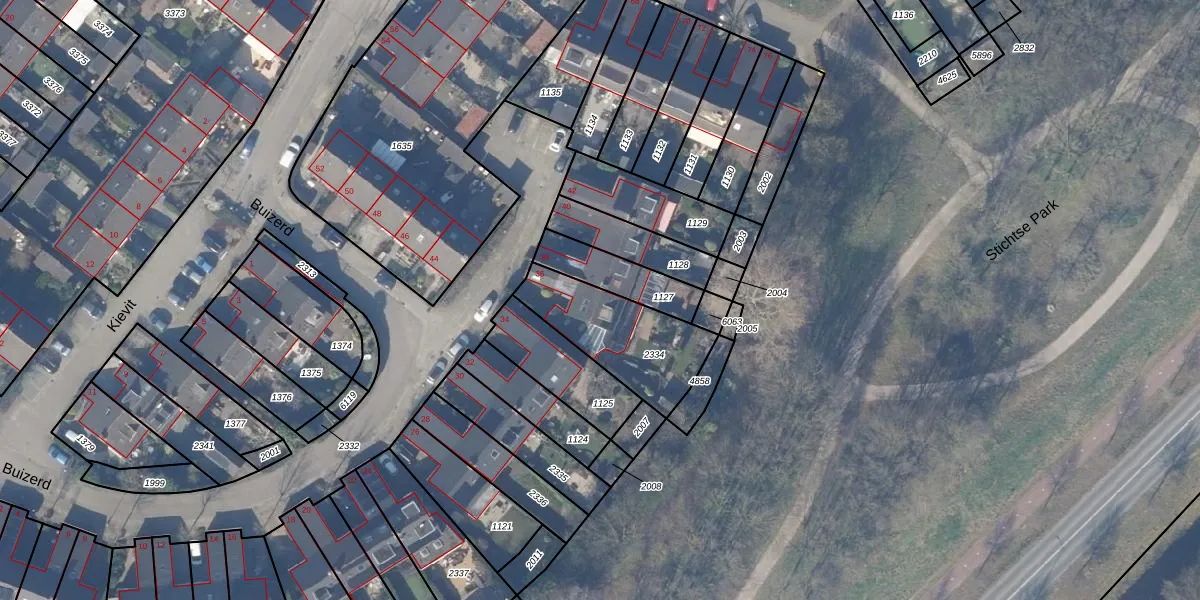 Het perceel waarop Buizerd 36 staat heeft een oppervlakte van 381 m². Dit is een groot perceel. De perceeloppervlakte wordt geregistreerd door het Kadaster. Gedetailleerde informatie over de maten van dit perceel kunt u vinden in het rapport Kadastrale kaart met maatvoering van Buizerd 36.