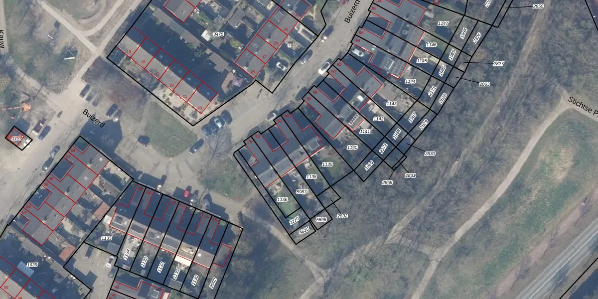 Gebruik de zoekbalk of klik op een perceel voor informatie over de adressen binnen dit perceel.