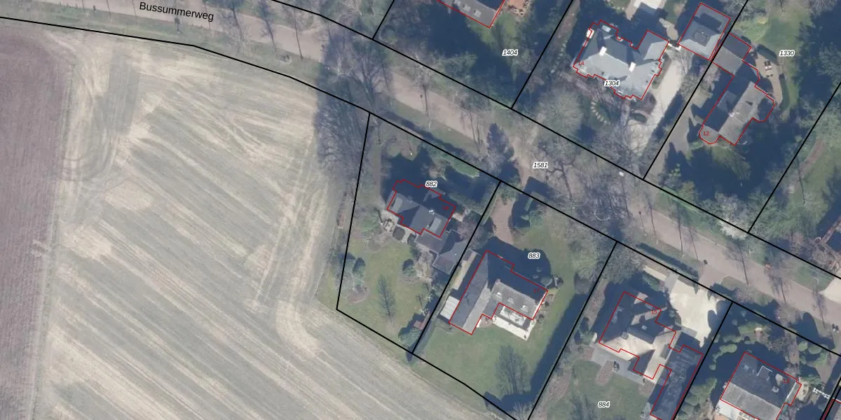 Bussummerweg 19 is gelegen op kadastraal perceel BRC00D882. Deze kadastrale aanduiding is uniek en wordt gebruikt door het Kadaster om eigendomsrechten en andere zakelijke rechten vast te leggen. Het perceel maakt onderdeel uit van de kadastrale gemeente Blaricum.