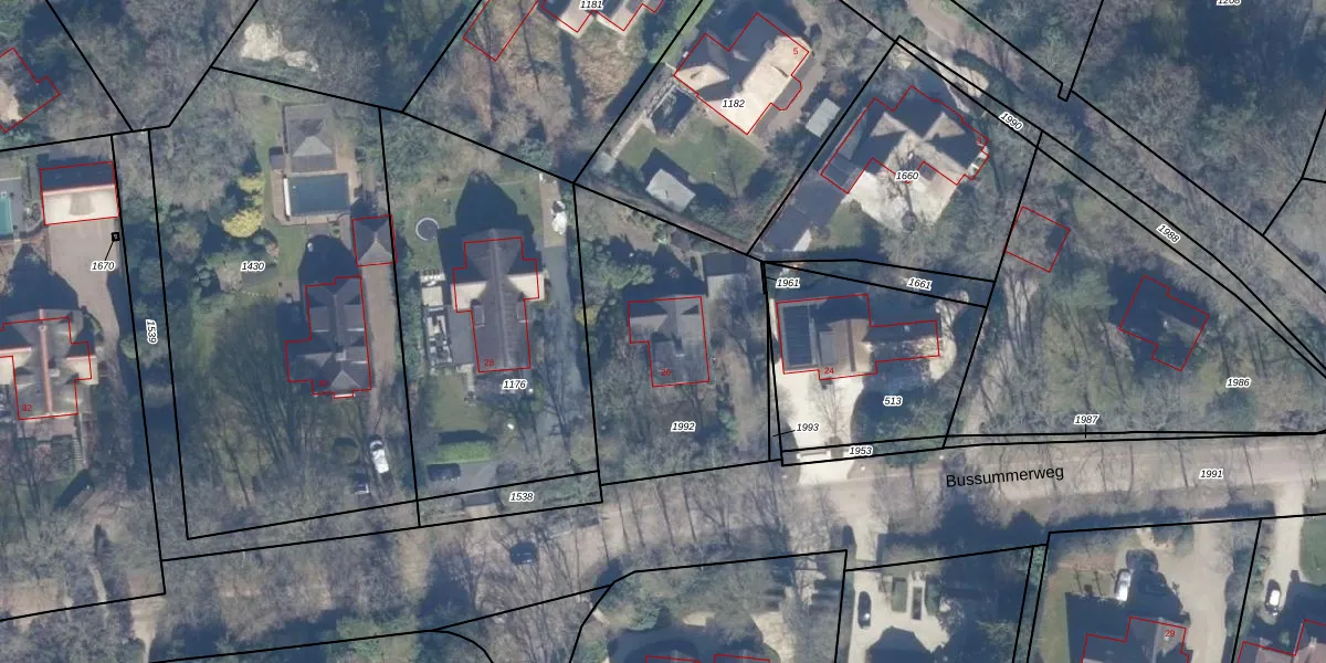Bussummerweg 26 is gelegen op kadastraal perceel BRC00D1992. Deze kadastrale aanduiding is uniek en wordt gebruikt door het Kadaster om eigendomsrechten en andere zakelijke rechten vast te leggen. Het perceel maakt onderdeel uit van de kadastrale gemeente Blaricum.