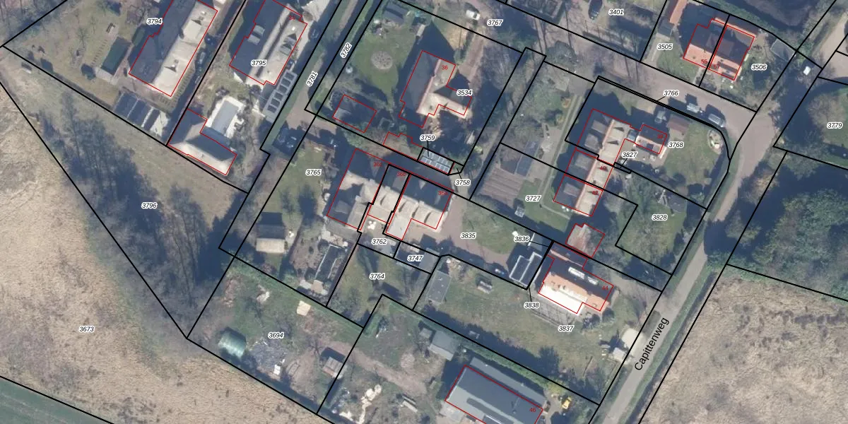 Capittenweg 36-a is gelegen op kadastraal perceel BRC00B3835. Deze kadastrale aanduiding is uniek en wordt gebruikt door het Kadaster om eigendomsrechten en andere zakelijke rechten vast te leggen. Het perceel maakt onderdeel uit van de kadastrale gemeente Blaricum.