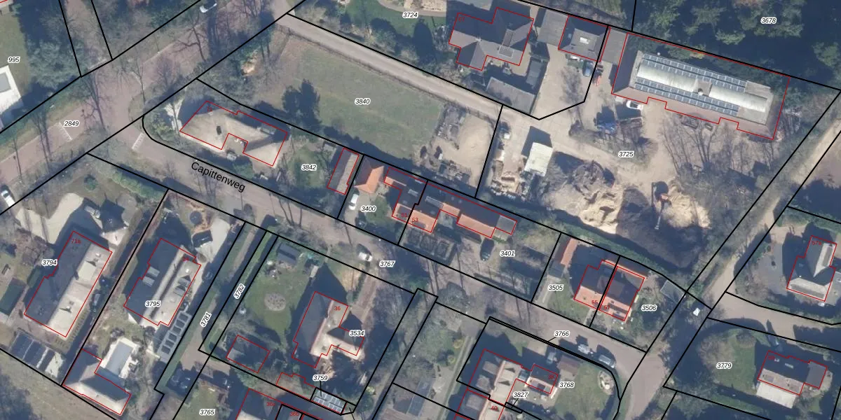 Capittenweg 53 is gelegen op kadastraal perceel BRC00B3401. Deze kadastrale aanduiding is uniek en wordt gebruikt door het Kadaster om eigendomsrechten en andere zakelijke rechten vast te leggen. Het perceel maakt onderdeel uit van de kadastrale gemeente Blaricum.