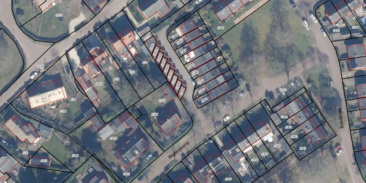 Het perceel waarop De Bongerd 1 staat heeft een oppervlakte van 21 m². Dit is een klein perceel. De perceeloppervlakte wordt geregistreerd door het Kadaster. Gedetailleerde informatie over de maten van dit perceel kunt u vinden in het rapport Kadastrale kaart met maatvoering van De Bongerd 1.