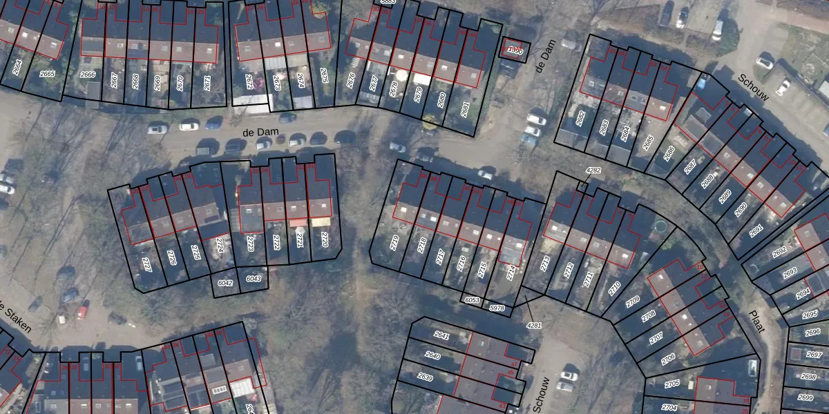 Gebruik de zoekbalk of klik op een perceel voor informatie over de adressen binnen dit perceel.