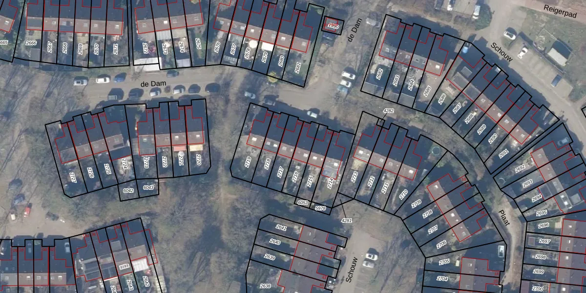 Gebruik de zoekbalk of klik op een perceel voor informatie over de adressen binnen dit perceel.