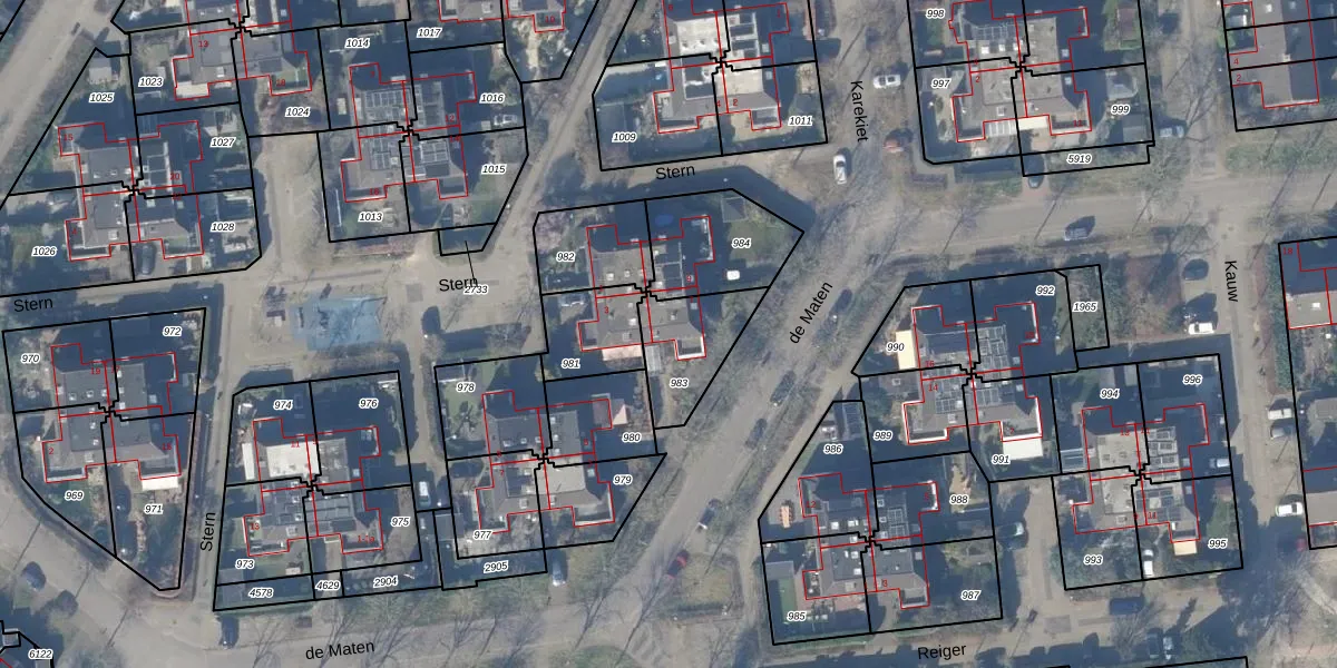 Gebruik de zoekbalk of klik op een perceel voor informatie over de adressen binnen dit perceel.