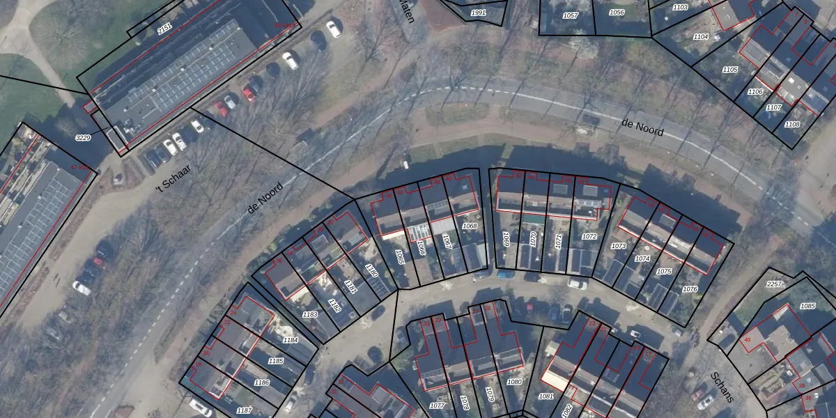 Het perceel waarop de Noord 36 staat heeft een oppervlakte van 143 m². Dit is een middelgroot perceel. De perceeloppervlakte wordt geregistreerd door het Kadaster. Gedetailleerde informatie over de maten van dit perceel kunt u vinden in het rapport Kadastrale kaart met maatvoering van de Noord 36.