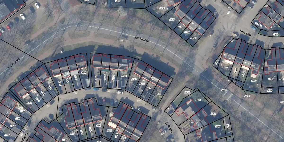 Het perceel waarop de Noord 50 staat heeft een oppervlakte van 194 m². Dit is een middelgroot perceel. De perceeloppervlakte wordt geregistreerd door het Kadaster. Gedetailleerde informatie over de maten van dit perceel kunt u vinden in het rapport Kadastrale kaart met maatvoering van de Noord 50.