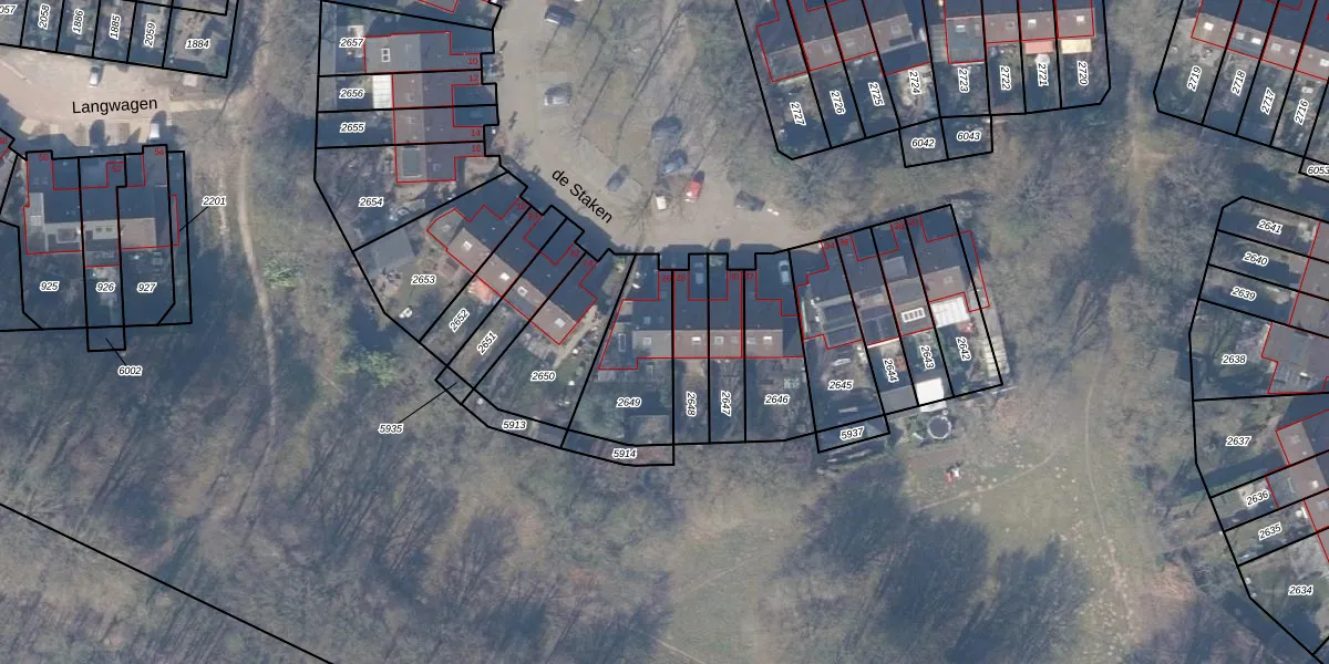 Het perceel waarop de Staken 26 staat heeft een oppervlakte van 303 m². Dit is een groot perceel. De perceeloppervlakte wordt geregistreerd door het Kadaster. Gedetailleerde informatie over de maten van dit perceel kunt u vinden in het rapport Kadastrale kaart met maatvoering van de Staken 26.