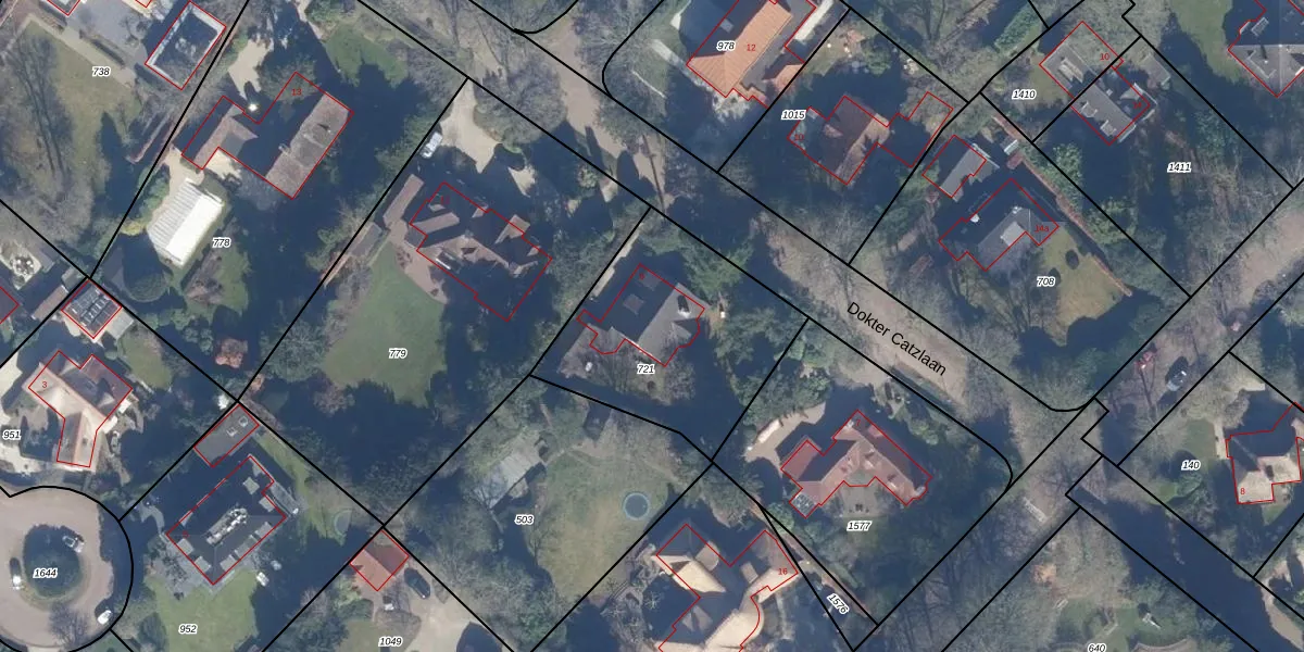 Het perceel waarop Dokter Catzlaan 9 staat heeft een oppervlakte van 850 m². Dit is een groot perceel. De perceeloppervlakte wordt geregistreerd door het Kadaster. Gedetailleerde informatie over de maten van dit perceel kunt u vinden in het rapport Kadastrale kaart met maatvoering van Dokter Catzlaan 9.