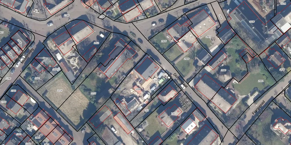 Het perceel waarop Dorpsstraat 16 staat heeft een oppervlakte van 932 m². Dit is een groot perceel. De perceeloppervlakte wordt geregistreerd door het Kadaster. Gedetailleerde informatie over de maten van dit perceel kunt u vinden in het rapport Kadastrale kaart met maatvoering van Dorpsstraat 16.