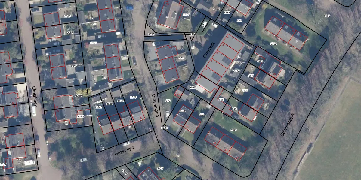 Gebruik de zoekbalk of klik op een perceel voor informatie over de adressen binnen dit perceel.