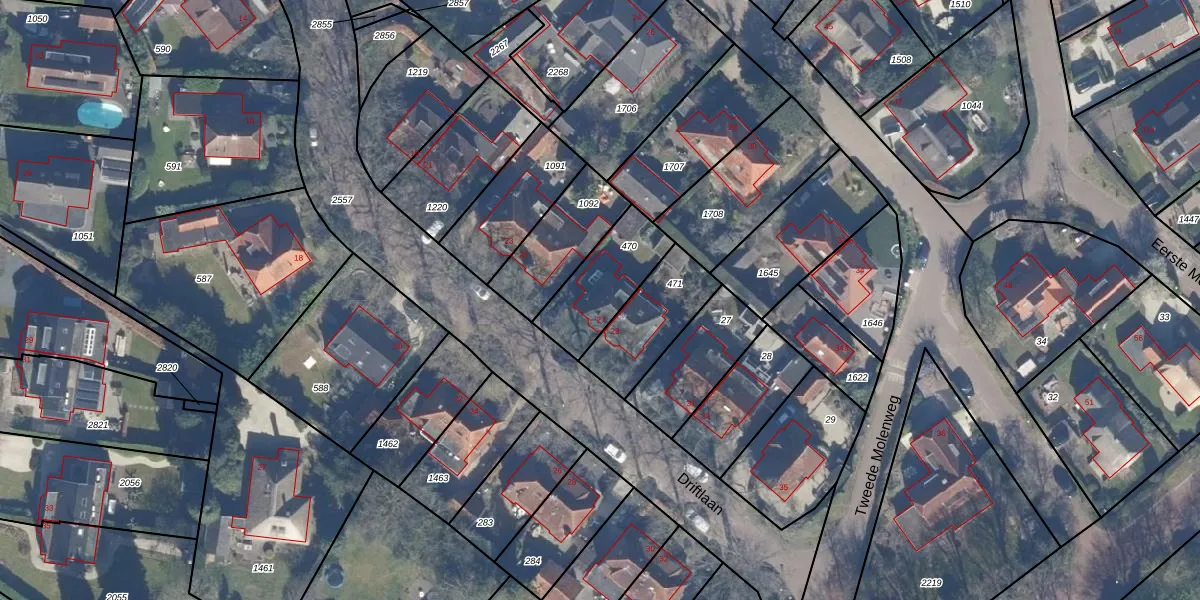 Gebruik de zoekbalk of klik op een perceel voor informatie over de adressen binnen dit perceel.