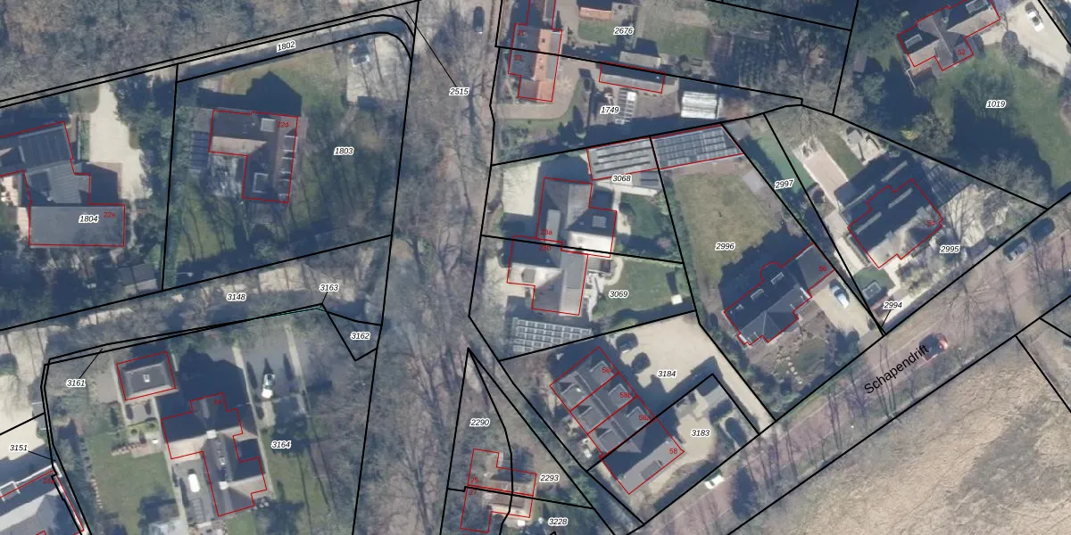 Gebruik de zoekbalk of klik op een perceel voor informatie over de adressen binnen dit perceel.