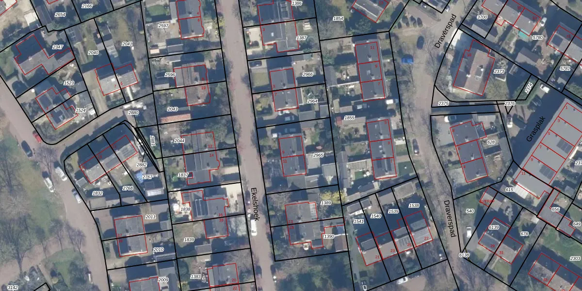 Het perceel waarop Ekelshoek 9 staat heeft een oppervlakte van 586 m². Dit is een groot perceel. De perceeloppervlakte wordt geregistreerd door het Kadaster. Gedetailleerde informatie over de maten van dit perceel kunt u vinden in het rapport Kadastrale kaart met maatvoering van Ekelshoek 9.