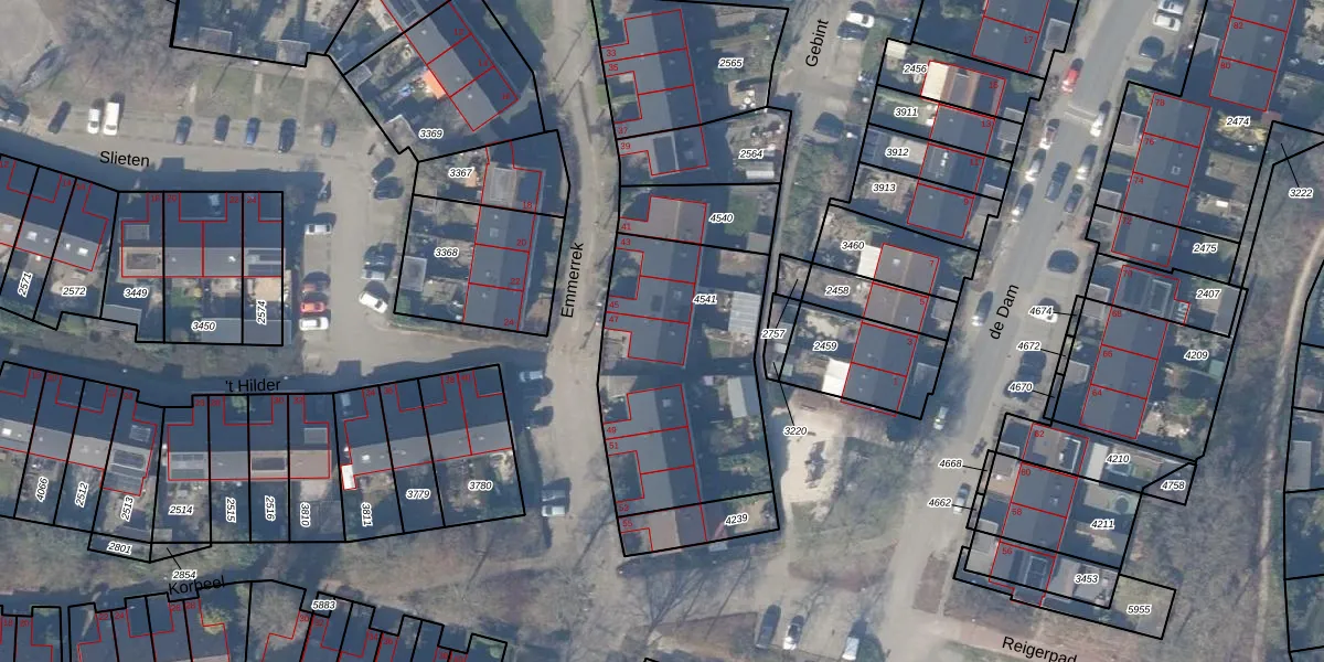Het perceel waarop Emmerrek 47 staat heeft een oppervlakte van 941 m². Dit is een groot perceel. De perceeloppervlakte wordt geregistreerd door het Kadaster. Gedetailleerde informatie over de maten van dit perceel kunt u vinden in het rapport Kadastrale kaart met maatvoering van Emmerrek 47.
