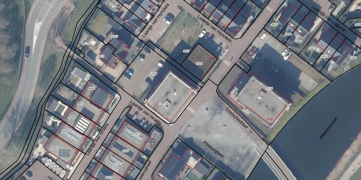 Het adres is gelegen op perceel 3506 in de sectie C en de kadastrale gemeente Blaricum. De kadastrale aanduiding is aldus BRC00-C-3506. Het perceel is kleiner dan gemiddeld in Blaricum. Het perceel is 1083 m² groot, terwijl het gemiddelde ligt op 2165,71 m². Het kleinste perceel in de kadastrale gemeente is 0 m² groot. De grootste perceeloppervlakte is 3,41 km². Op het perceel liggen in totaal 15 adressen. De huidige grenzen van het perceel zijn digitaal in de Basisregistratie Kadaster (BRK) geregistreerd op 21-09-2017.