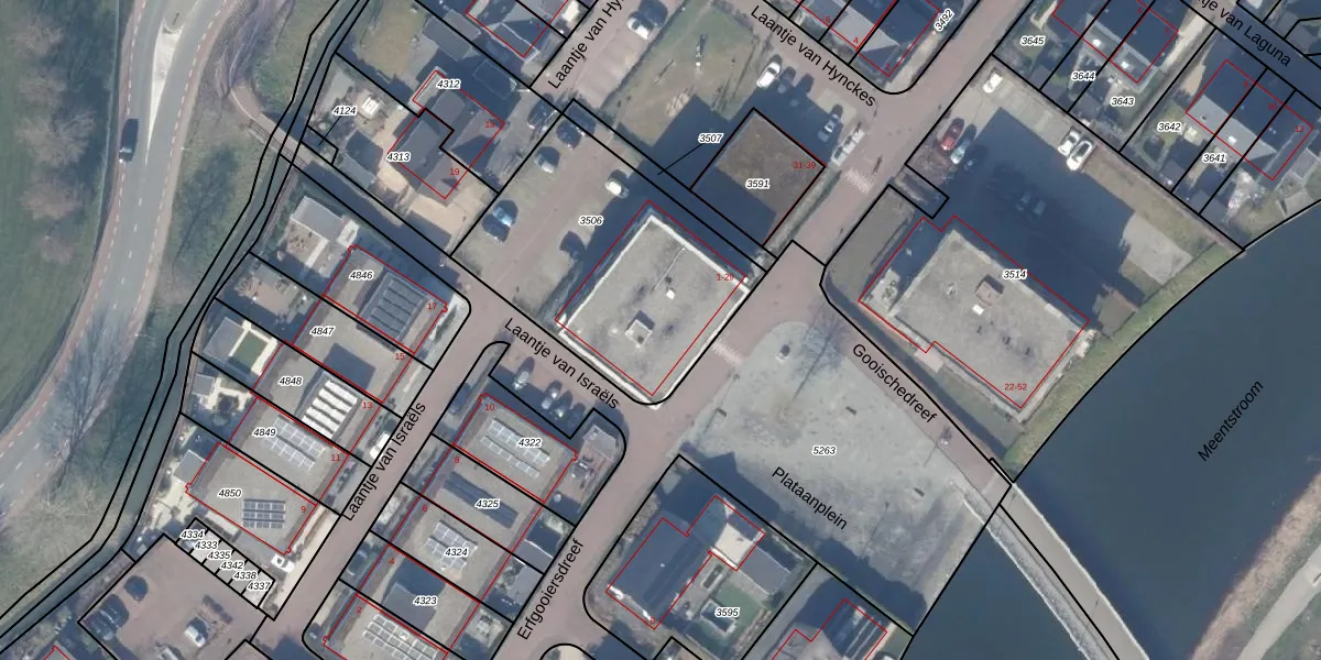Het adres is gelegen op perceel 3506 in de sectie C en de kadastrale gemeente Blaricum. De kadastrale aanduiding is aldus BRC00-C-3506. Het perceel is kleiner dan gemiddeld in Blaricum. Het perceel is 1083 m² groot, terwijl het gemiddelde ligt op 2166,61 m². Het kleinste perceel in de kadastrale gemeente is 0 m² groot. De grootste perceeloppervlakte is 3,41 km². Er zijn 15 adressen aanwezig op het perceel. De huidige grenzen van het perceel zijn digitaal in de Basisregistratie Kadaster (BRK) geregistreerd op 21-09-2017.