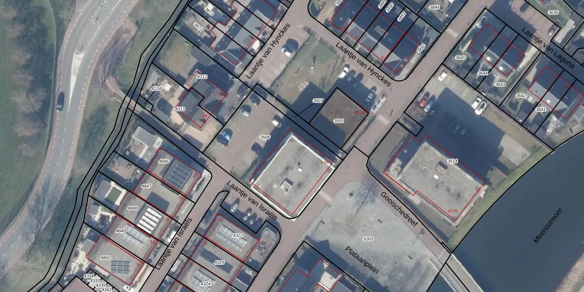 Het adres is gelegen op perceel 3506 in de sectie C en de kadastrale gemeente Blaricum. De kadastrale aanduiding is aldus BRC00-C-3506. Het perceel is kleiner dan gemiddeld in Blaricum. Het perceel is 1083 m² groot, terwijl het gemiddelde ligt op 2166,61 m². Het kleinste perceel in de kadastrale gemeente is 0 m² groot. De grootste perceeloppervlakte is 3,41 km². Op het perceel liggen in totaal 15 adressen. De huidige grenzen van het perceel zijn digitaal in de Basisregistratie Kadaster (BRK) geregistreerd op 21-09-2017.