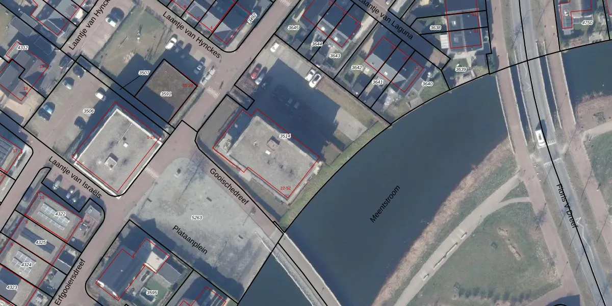 Het adres is gelegen op perceel 3514 in de sectie C en de kadastrale gemeente Blaricum. De kadastrale aanduiding is aldus BRC00-C-3514. De gemiddelde perceelgrootte in Blaricum is 2166,61 m². Dit perceel is kleiner: de perceeloppervlakte bedraagt 2035 m². De grootste perceeloppervlakte in de kadastrale gemeente is 3,41 km². De kleinste oppervlakte bedraagt 0 m². Op het perceel liggen in totaal 16 adressen. In de Basisregistratie Kadaster (BRK) werden de grenzen van het perceel geregistreerd op 02-11-2015.