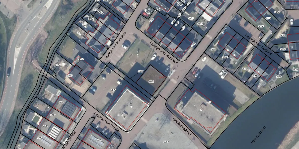 Het adres is gelegen op perceel 3591 in de sectie C en de kadastrale gemeente Blaricum. De kadastrale aanduiding is aldus BRC00-C-3591. De gemiddelde perceelgrootte in Blaricum is 2166,61 m². Dit perceel is kleiner: de perceeloppervlakte bedraagt 218 m². De grootste perceeloppervlakte in de kadastrale gemeente is 3,41 km². De kleinste oppervlakte bedraagt 0 m². Op het perceel liggen in totaal 5 adressen. De huidige grenzen van het perceel zijn digitaal in de Basisregistratie Kadaster (BRK) geregistreerd op 26-02-2013.