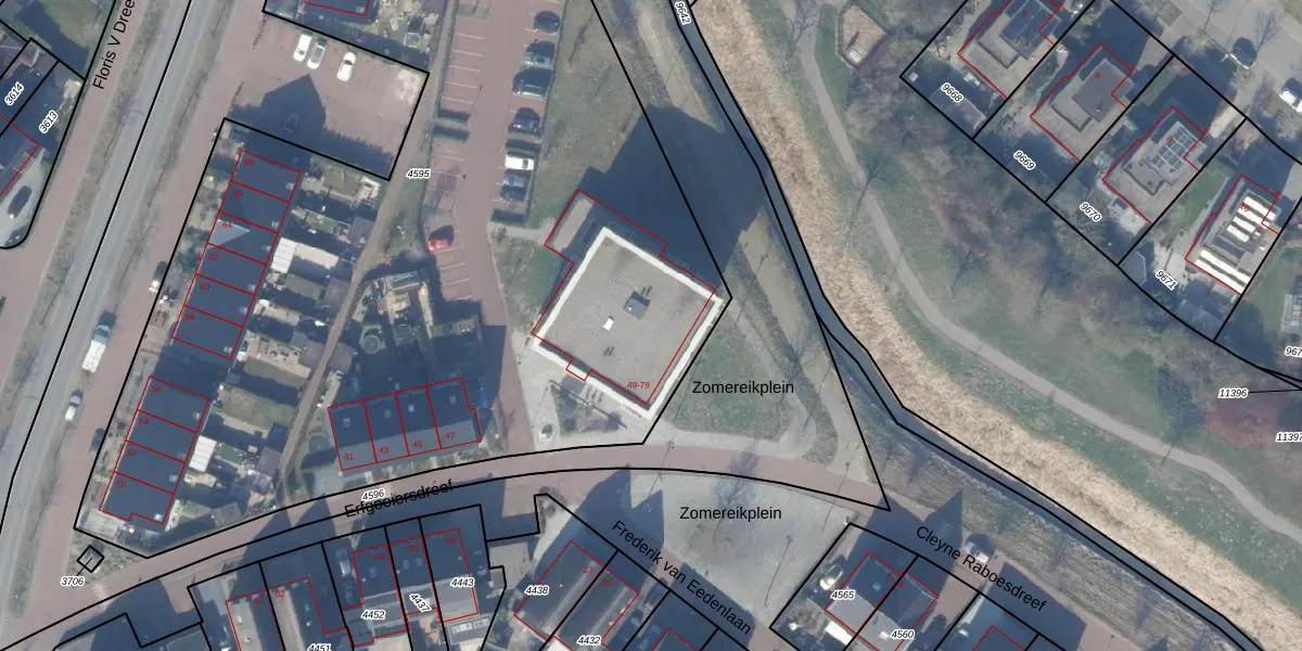 Erfgooiersdreef 53 is gelegen op kadastraal perceel BRC00C4595. Deze kadastrale aanduiding is uniek en wordt gebruikt door het Kadaster om eigendomsrechten en andere zakelijke rechten vast te leggen. Het perceel maakt onderdeel uit van de kadastrale gemeente Blaricum.