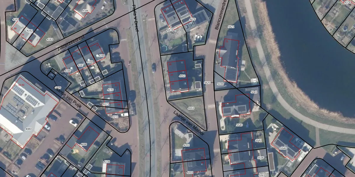 Floris V Dreef 22 is gelegen op kadastraal perceel BRC00C4552. Deze kadastrale aanduiding is uniek en wordt gebruikt door het Kadaster om eigendomsrechten en andere zakelijke rechten vast te leggen. Het perceel maakt onderdeel uit van de kadastrale gemeente Blaricum.