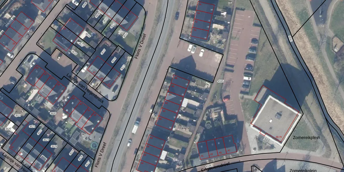 Het perceel waarop Floris V Dreef 66 staat heeft een oppervlakte van 6980 m². Dit is een zeer groot perceel. De perceeloppervlakte wordt geregistreerd door het Kadaster. Gedetailleerde informatie over de maten van dit perceel kunt u vinden in het rapport Kadastrale kaart met maatvoering van Floris V Dreef 66.