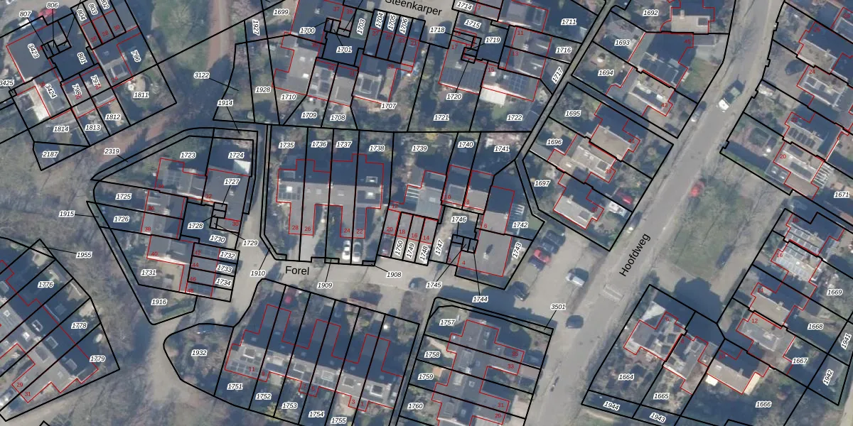 Het perceel waarop Forel 12 staat heeft een oppervlakte van 294 m². Dit is een middelgroot perceel. De perceeloppervlakte wordt geregistreerd door het Kadaster. Gedetailleerde informatie over de maten van dit perceel kunt u vinden in het rapport Kadastrale kaart met maatvoering van Forel 12.