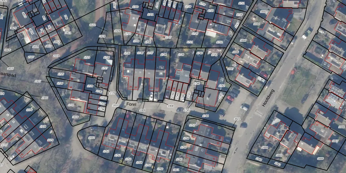Het perceel waarop Forel 18 staat heeft een oppervlakte van 33 m². Dit is een klein perceel. De perceeloppervlakte wordt geregistreerd door het Kadaster. Gedetailleerde informatie over de maten van dit perceel kunt u vinden in het rapport Kadastrale kaart met maatvoering van Forel 18.