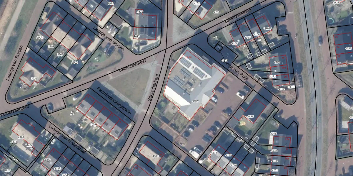 Gooischedreef 16 is gelegen op kadastraal perceel BRC00C4083. Deze kadastrale aanduiding is uniek en wordt gebruikt door het Kadaster om eigendomsrechten en andere zakelijke rechten vast te leggen. Het perceel maakt onderdeel uit van de kadastrale gemeente Blaricum.