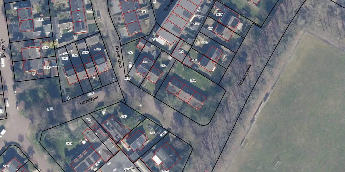 Het perceel waarop Hazeleger 33 staat heeft een oppervlakte van 875 m². Dit is een groot perceel. De perceeloppervlakte wordt geregistreerd door het Kadaster. Gedetailleerde informatie over de maten van dit perceel kunt u vinden in het rapport Kadastrale kaart met maatvoering van Hazeleger 33.