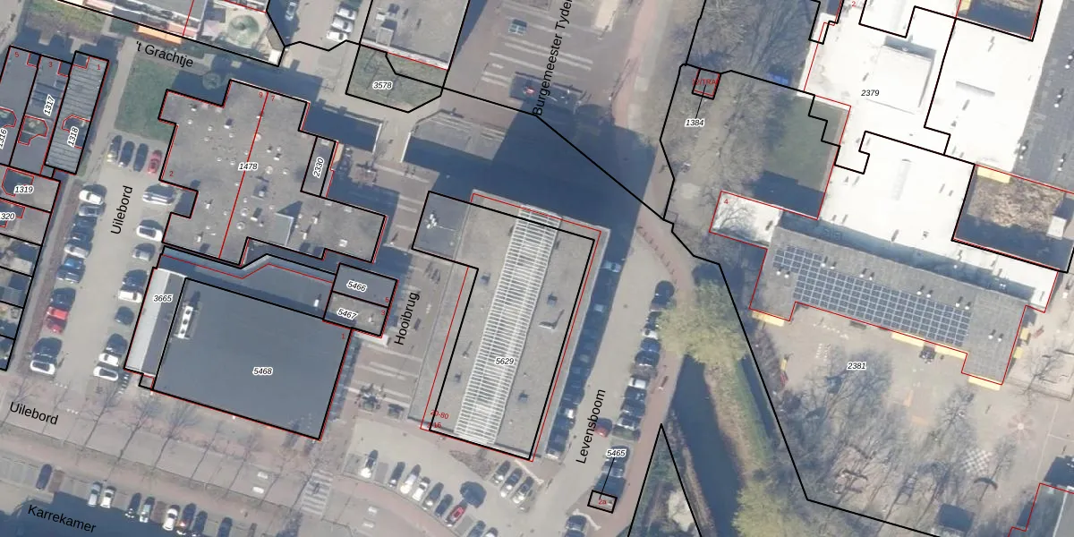 Het perceel waarop Hooibrug 32 staat heeft een oppervlakte van 965 m². Dit is een groot perceel. De perceeloppervlakte wordt geregistreerd door het Kadaster. Gedetailleerde informatie over de maten van dit perceel kunt u vinden in het rapport Kadastrale kaart met maatvoering van Hooibrug 32.