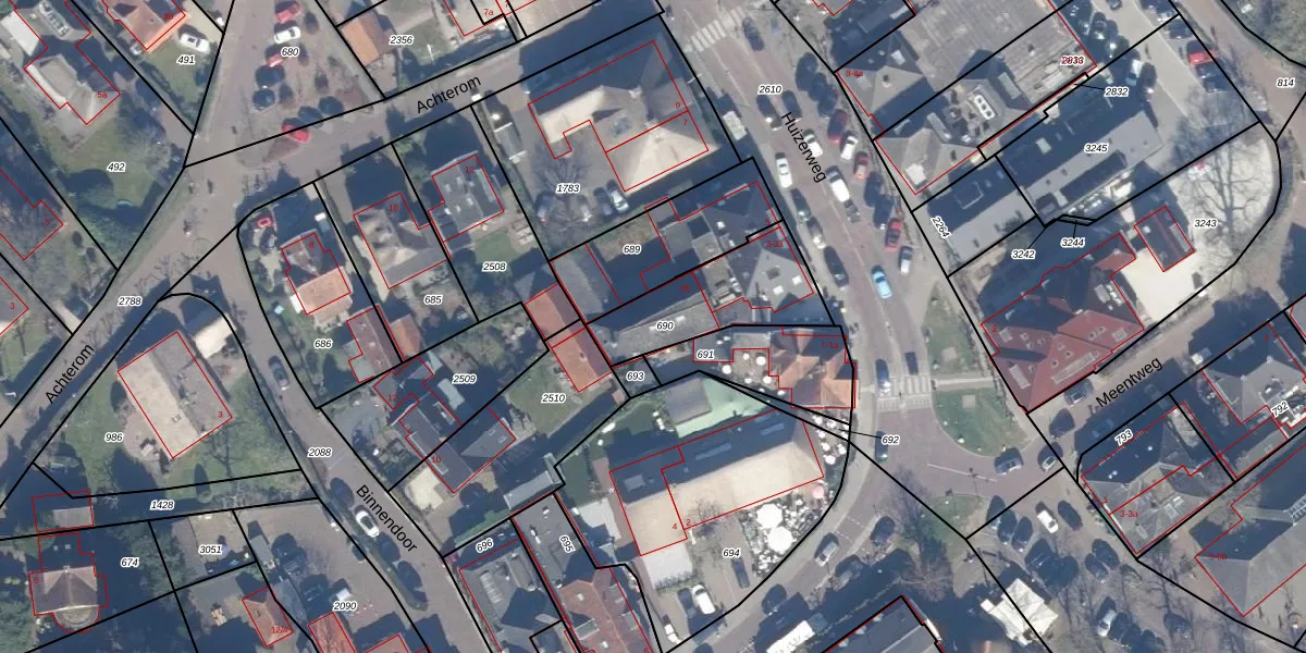 Huizerweg 3-b is gelegen op kadastraal perceel BRC00E690. Deze kadastrale aanduiding is uniek en wordt gebruikt door het Kadaster om eigendomsrechten en andere zakelijke rechten vast te leggen. Het perceel maakt onderdeel uit van de kadastrale gemeente Blaricum.