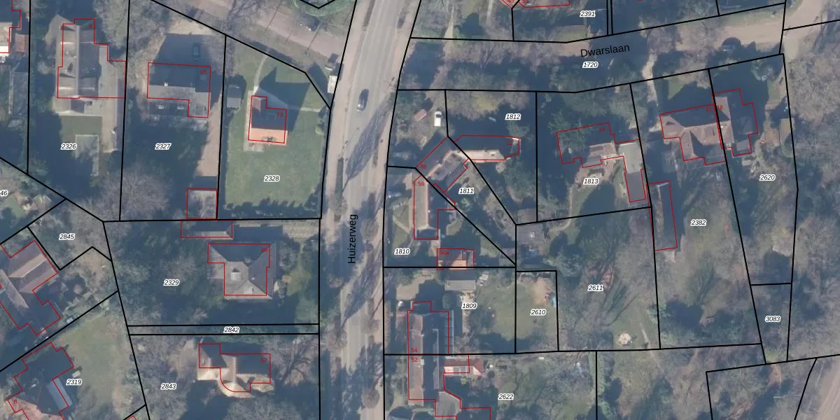 Het perceel waarop Huizerweg 56 staat heeft een oppervlakte van 465 m². Dit is een groot perceel. De perceeloppervlakte wordt geregistreerd door het Kadaster. Gedetailleerde informatie over de maten van dit perceel kunt u vinden in het rapport Kadastrale kaart met maatvoering van Huizerweg 56.