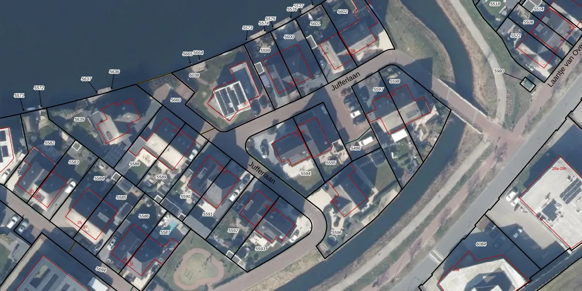 Het perceel waarop Jufferlaan 18 staat heeft een oppervlakte van 394 m². Dit is een groot perceel. De perceeloppervlakte wordt geregistreerd door het Kadaster. Gedetailleerde informatie over de maten van dit perceel kunt u vinden in het rapport Kadastrale kaart met maatvoering van Jufferlaan 18.