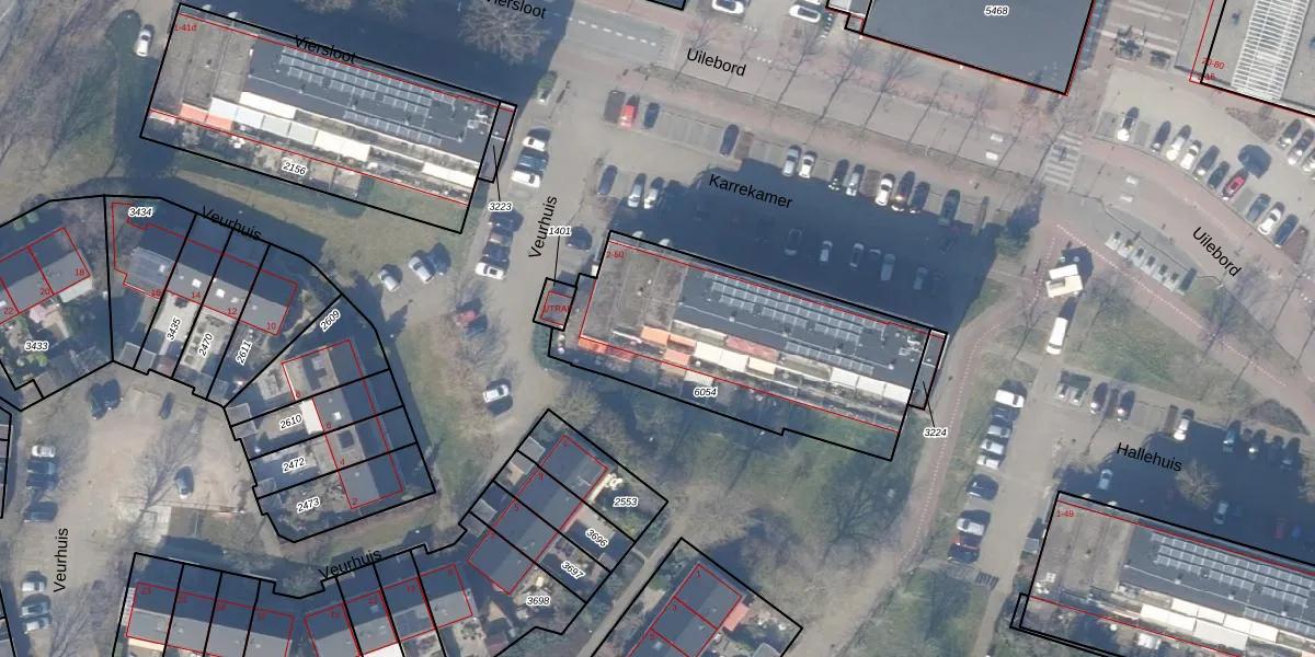 Het perceel waarop Karrekamer 24 staat heeft een oppervlakte van 1142 m². Dit is een zeer groot perceel. De perceeloppervlakte wordt geregistreerd door het Kadaster. Gedetailleerde informatie over de maten van dit perceel kunt u vinden in het rapport Kadastrale kaart met maatvoering van Karrekamer 24.