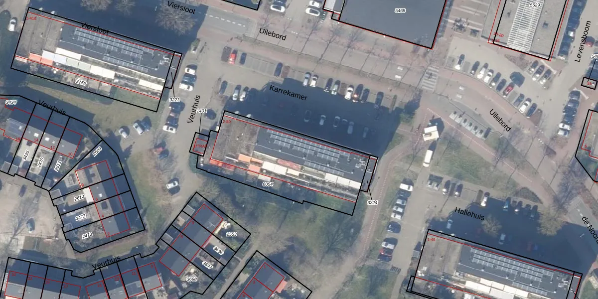 Het perceel waarop Karrekamer 32 staat heeft een oppervlakte van 1142 m². Dit is een zeer groot perceel. De perceeloppervlakte wordt geregistreerd door het Kadaster. Gedetailleerde informatie over de maten van dit perceel kunt u vinden in het rapport Kadastrale kaart met maatvoering van Karrekamer 32.