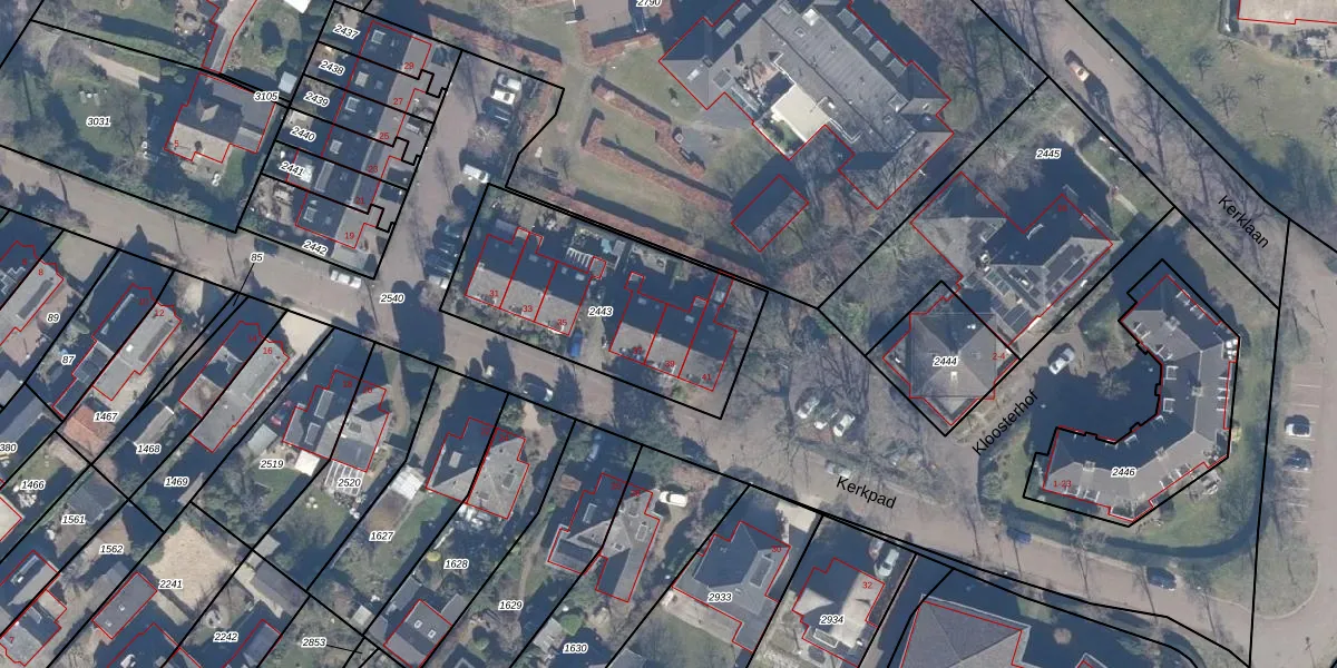 Het perceel waarop Kerkpad 39 staat heeft een oppervlakte van 927 m². Dit is een groot perceel. De perceeloppervlakte wordt geregistreerd door het Kadaster. Gedetailleerde informatie over de maten van dit perceel kunt u vinden in het rapport Kadastrale kaart met maatvoering van Kerkpad 39.