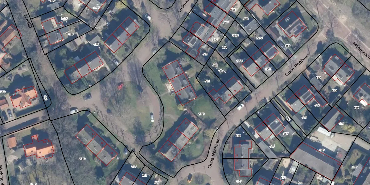 Ludenweg 26 is gelegen op kadastraal perceel BRC00C2299. Deze kadastrale aanduiding is uniek en wordt gebruikt door het Kadaster om eigendomsrechten en andere zakelijke rechten vast te leggen. Het perceel maakt onderdeel uit van de kadastrale gemeente Blaricum.