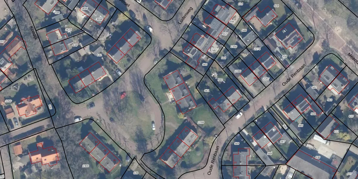Ludenweg 28 is gelegen op kadastraal perceel BRC00C2299. Deze kadastrale aanduiding is uniek en wordt gebruikt door het Kadaster om eigendomsrechten en andere zakelijke rechten vast te leggen. Het perceel maakt onderdeel uit van de kadastrale gemeente Blaricum.
