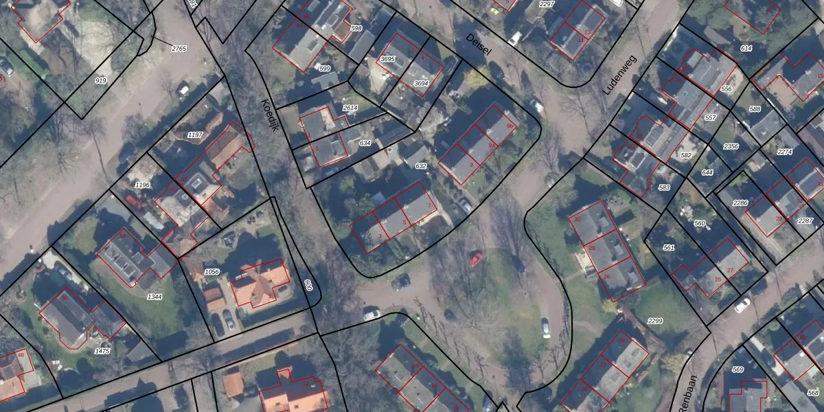 Ludenweg 7 is gelegen op kadastraal perceel BRC00C632. Deze kadastrale aanduiding is uniek en wordt gebruikt door het Kadaster om eigendomsrechten en andere zakelijke rechten vast te leggen. Het perceel maakt onderdeel uit van de kadastrale gemeente Blaricum.
