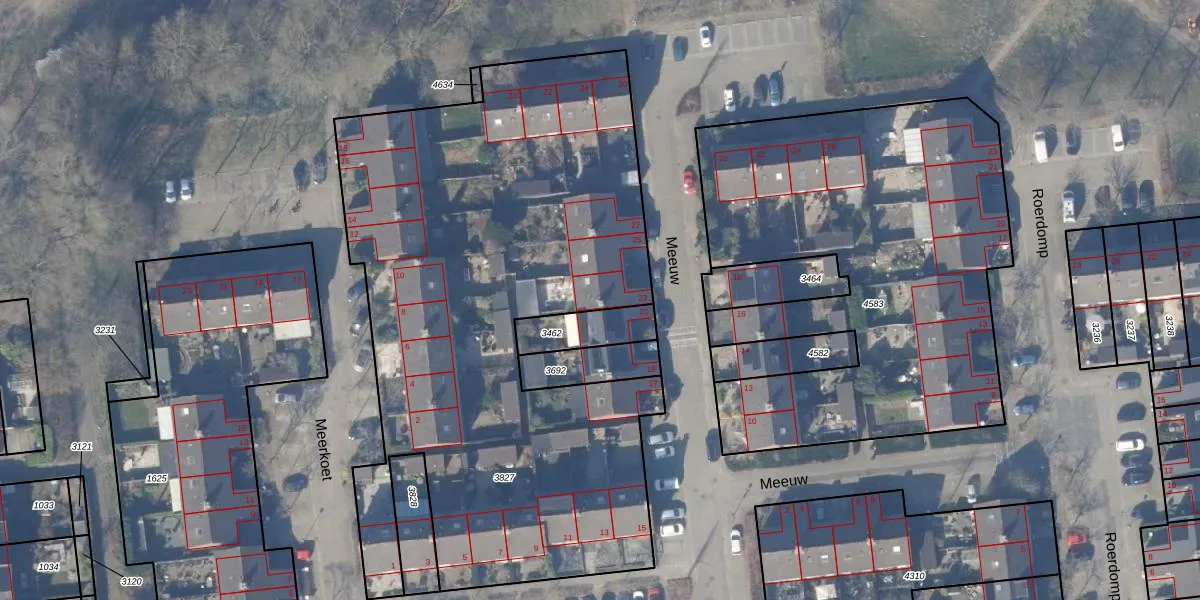 Het perceel waarop Meeuw 23 staat heeft een oppervlakte van 3577 m². Dit is een zeer groot perceel. De perceeloppervlakte wordt geregistreerd door het Kadaster. Gedetailleerde informatie over de maten van dit perceel kunt u vinden in het rapport Kadastrale kaart met maatvoering van Meeuw 23.