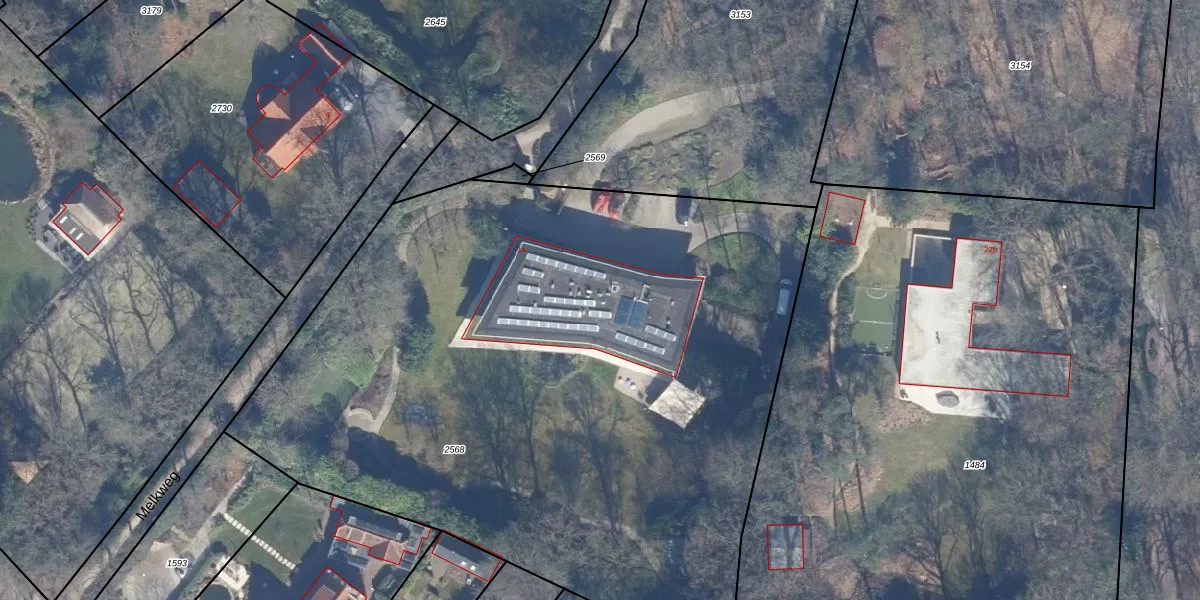Het perceel waarop Melkweg 1-a staat heeft een oppervlakte van 4975 m². Dit is een zeer groot perceel. De perceeloppervlakte wordt geregistreerd door het Kadaster. Gedetailleerde informatie over de maten van dit perceel kunt u vinden in het rapport Kadastrale kaart met maatvoering van Melkweg 1-a.